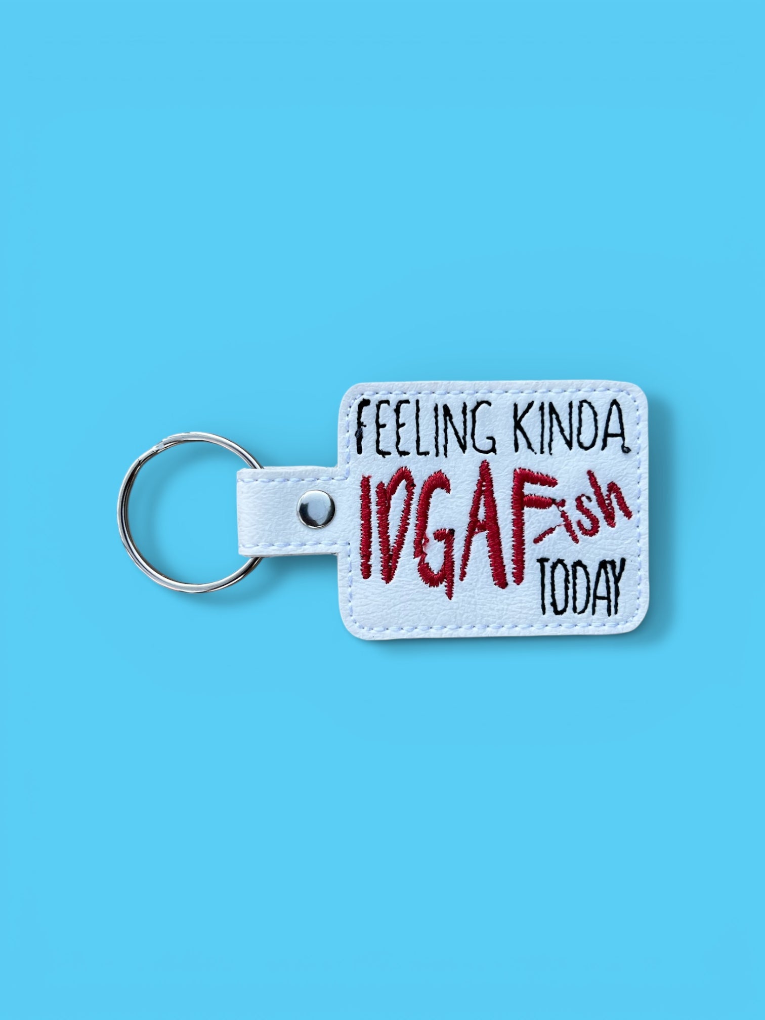 Some days just call for honesty. This embroidered keychain features the phrase “Feeling Kinda IDGAFish Today”stitched in bold, high-contrast lettering—perfect for when your patience is low and your attitude is loud.