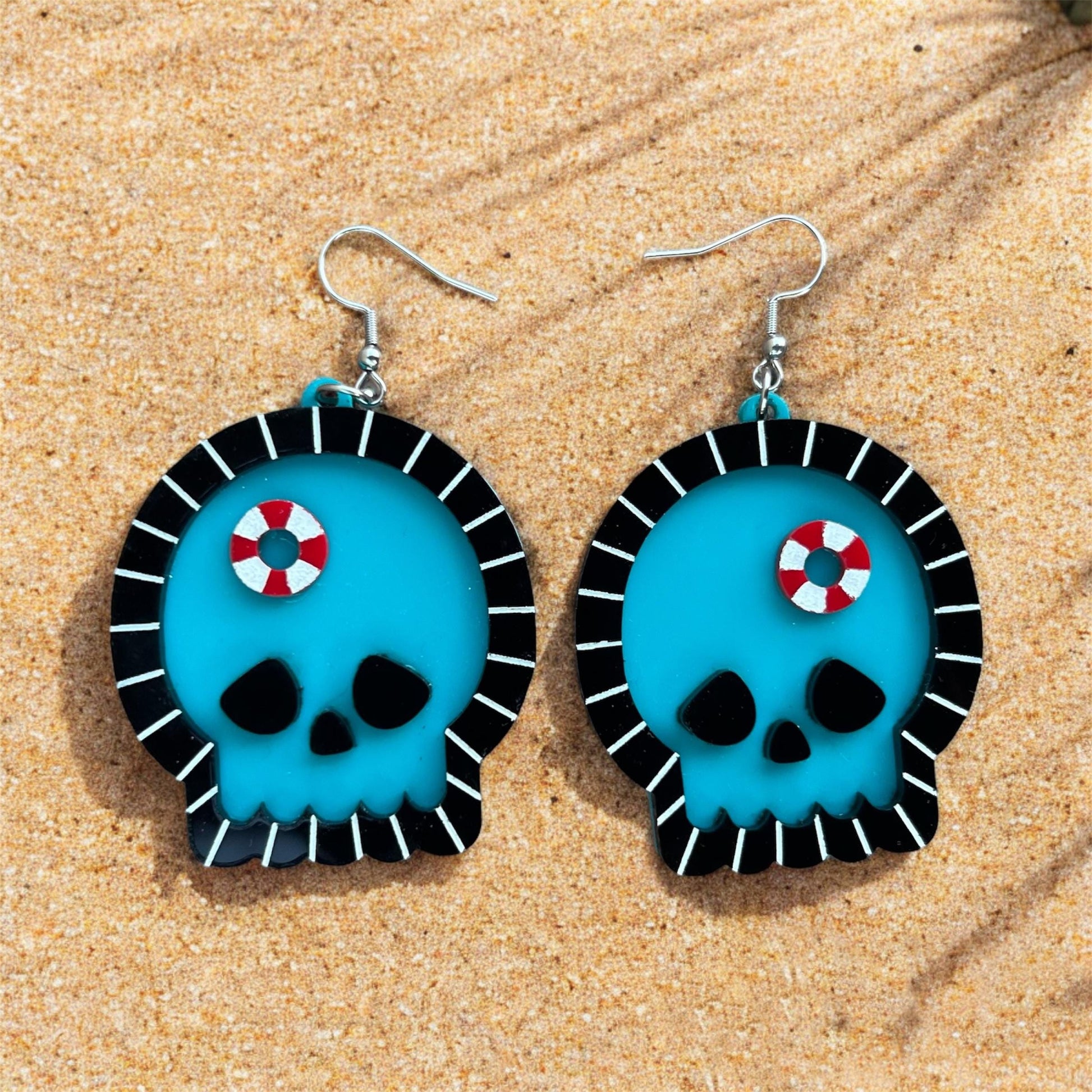 The coolest and spookiest swimming pool earrings, made with wood, acrylic, and stainless silver hardware. Perfect for Summerween!